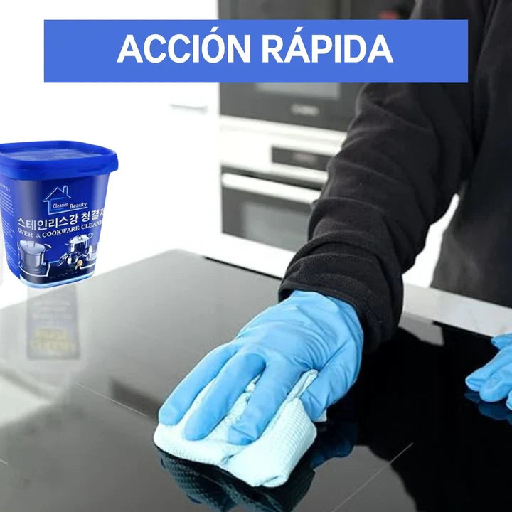 Tus ollas quedan como espejo. Tu estufa brilla como nueva. Y tú con tiempo para lo que realmente importa.